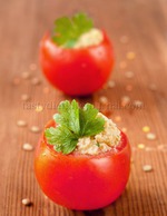 Я ее люблю и просто так, в виде пюре или рассыпчатую, но как минимум для фотографии, хотелось чего-то посимпатичней. А так как моим обязательным условием употребления крахмалистых углеводов является их сочетание со свежими овощами в качестве дополнительного источника клетчатки, вспомнилась мне замечательная идея с фаршированием помидоров.