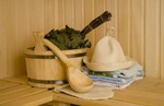 -В финской бане или сауне, температура воздуха достигает 130-150 с при низкой влажности до 10-15 %. Процесс согревания в сауне повторяется 2-3 раза по 5-20 мин., сопровождается обильным потоотделением, после чего принимается холодный душ. Своеобразна массажная баня, в которой парятся и одновременно вдыхают душистый "горячий туман" из настоя трав.