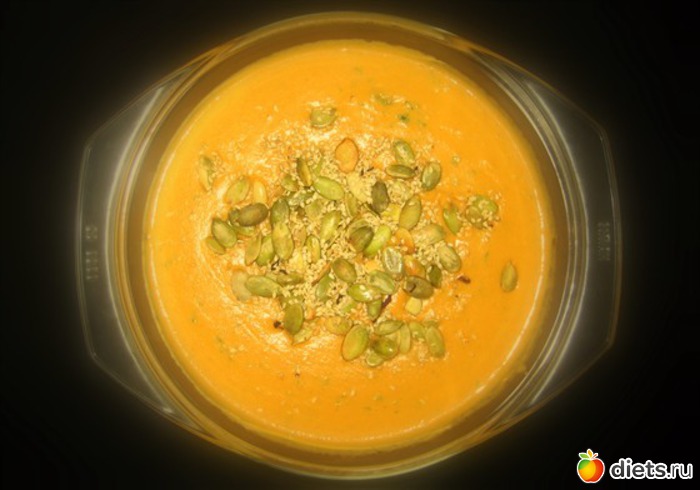 А я еще припускаю на капельке масла морковку и лучек (молока добавляю, чтоб не жарилось, а томилось). Потом вместе пюрирую. ММММММММ, вксно! С тыквенными семечками вообще кайф!!!