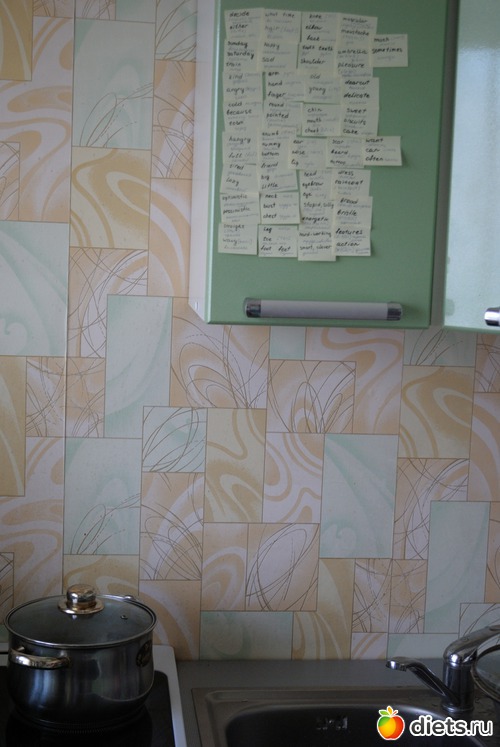 Проснулась моя маленькая фея, я ее покормила и мы начали с ней готовить обед. Папа наш отсыпался (он ночью работал). Задумала я сварить борщ. Во время готовки я учила английские слова. Вот мой учебный станок