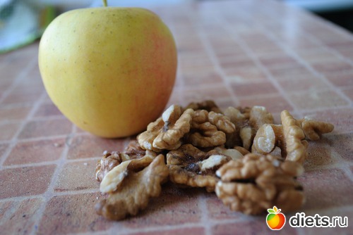 На ужин мне страсть как захотелось орехов. Ужин мой был яблочно-ореховый с зеленым чаем.