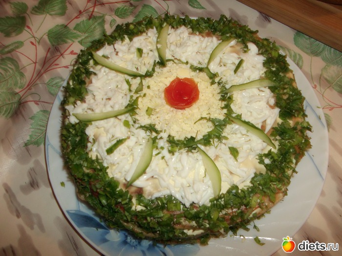 Бока и верх торта смазать кремом, третье оставшееся яйцо натираем на тёрке(белок и желток отдельно), и украшаем торт, кому как нравится.