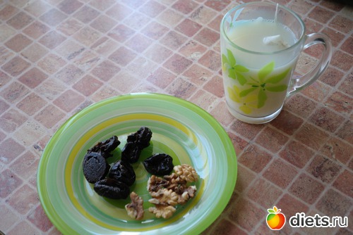 рыбки мне не хватило и я выпила чаю с грецким орехом и черносливом.