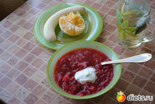 На обед у меня был борщ со сметанкой, банан и половина апельсина