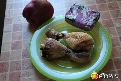 Полдничала я куриными ножками, сырком творожным и яблоком