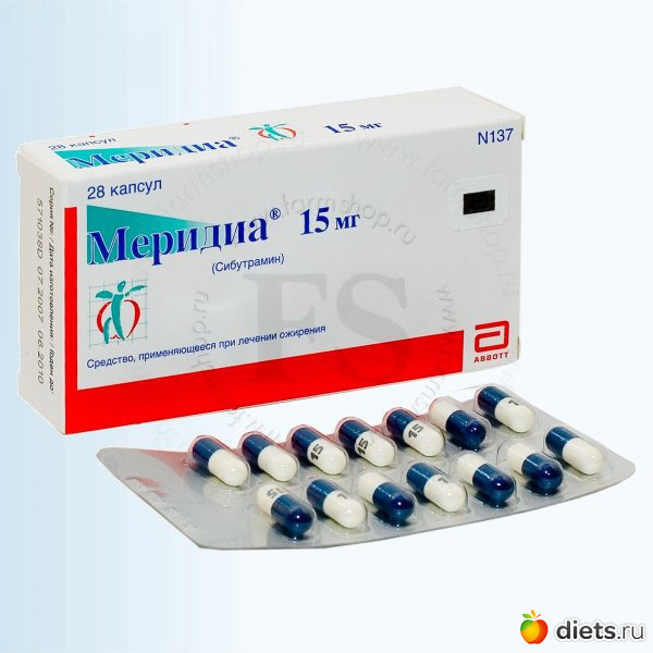 Выпускается Меридиа в капсулах (по 10 и 15 мг), принимается один раз в день. Начальная доза - 10 мг в сутки. При этом если в течение первых 4-х недель вес пациента уменьшится менее чем на 2 кг, врач может увеличить дозу препарата до 15 мг в сутки.