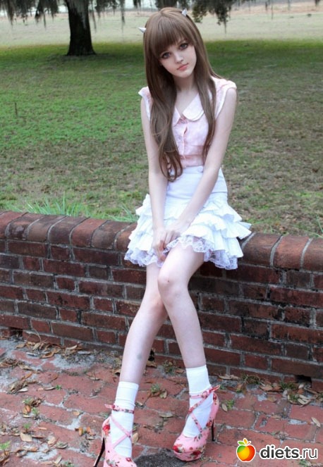 Глядя на фотографии шестнадцатилетней американки по имени Дакота, невозможно отделаться от впечатления, что кукла Барби ожила по мановению волшебной палочки. Огроменные глаза, непропорционально большой лоб, кукольное личико и строение тела, – всё вместе это создаёт немного жутковатый образ Барби во плоти.
