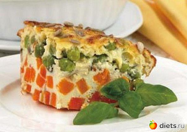 Запеканка из пароварки. Обед Яйцо, перец, морковь, горошек, зеленая фасоль.