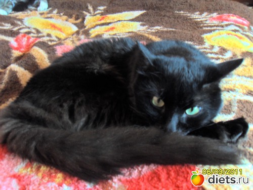Когда мы поняли, что Ксюха начинает что-то видеть, я спросила, что будем с ней делать. Он ответил "Все! Кошка теперь наша! И пусть только какая-нибудь ...ука заявит, что это ее кошечка убежала-пропала и т.д. - в морду дам!" Вот питачамба (нос