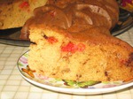 Залить тесто в форму (если используете металлическую, то смажьте растительным маслом). Выпекать в духовке при температуре 200 градусов в течение 50-60 минут. На нижний уровень духовки поставить металлическую миску с водой, чтобы кекс не пригорел. Готовность кекса проверять зубочисткой, если она сухая - кекс готов.