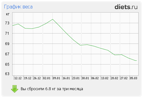 За атаку -почти 8 кг!!!!!!!! Молодчина!!!! А у меня ушло только 1.5 кг за 5 дней!!! Но сейчас уже четвертая неделя и.... 1кг в неделю меня тоже устраивает. хорошая диета. Мне нравится.