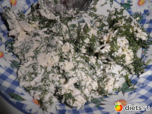 В другую часть поменьше добавить мелко рубленную зелень, размешать.