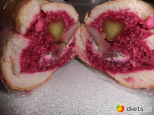 Третью часть смеси отложить, к оставшейся добавить свеклу отварную,