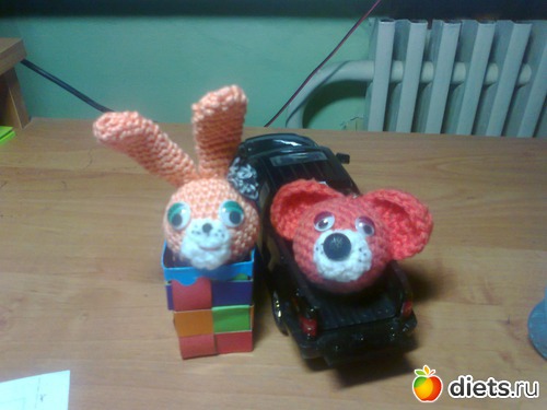 А это я обвязала шарики для пинг-понга и сделала брелки, просто мордашки.