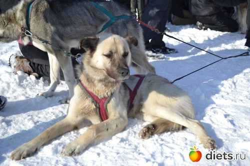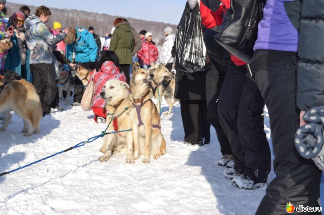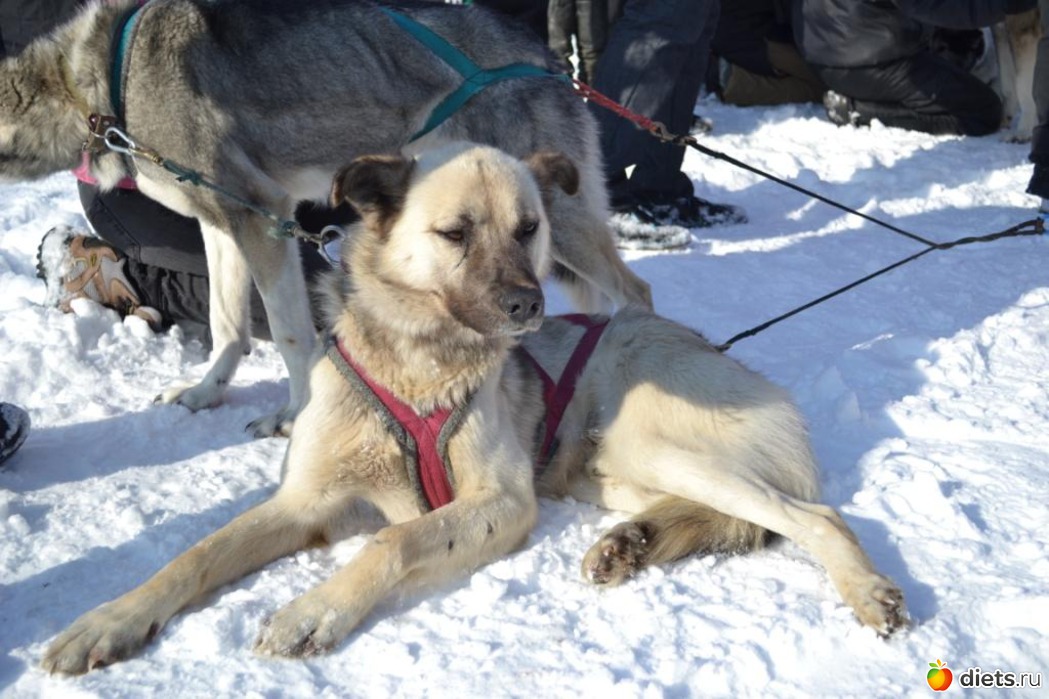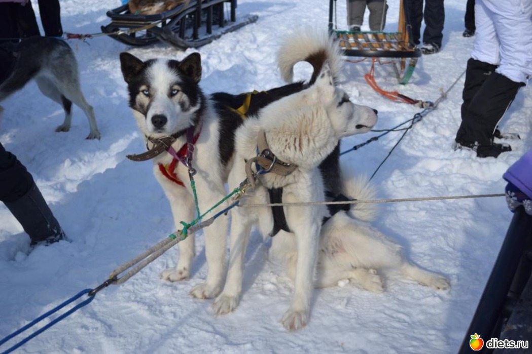 И вот они - главные герои праздника: ездовые собаки! Абсолютно не злые :-)