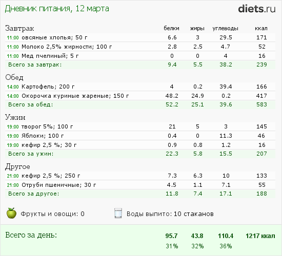 Калорийность продуктов