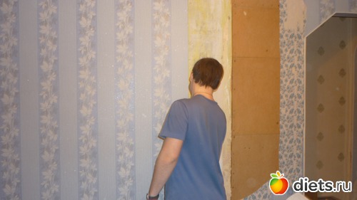 Здесь мой муж сдирает обои, которые были поклеяны в зале... бррр))