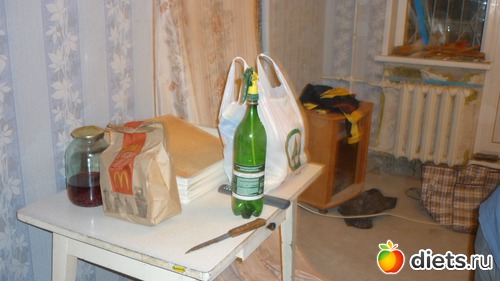 Жили мы все это время в условиях, непригодных для проживания в принципе)) Это все тот же зал, но уже с другого ракурса... Питались мы в основном фастфудом, т. к. газовая плита стояла в... спальне)))))