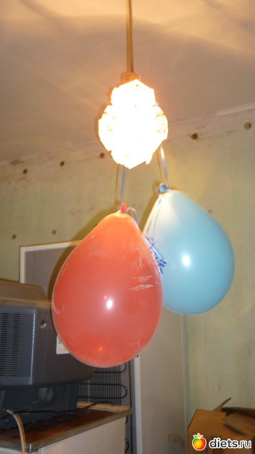 но даже в такой атмосфере была создана романтическая обстановка))) шарики надували на нашу свадьбу... висели они на люстре примерно месяца 4-5)