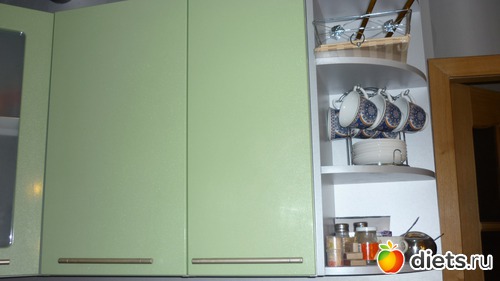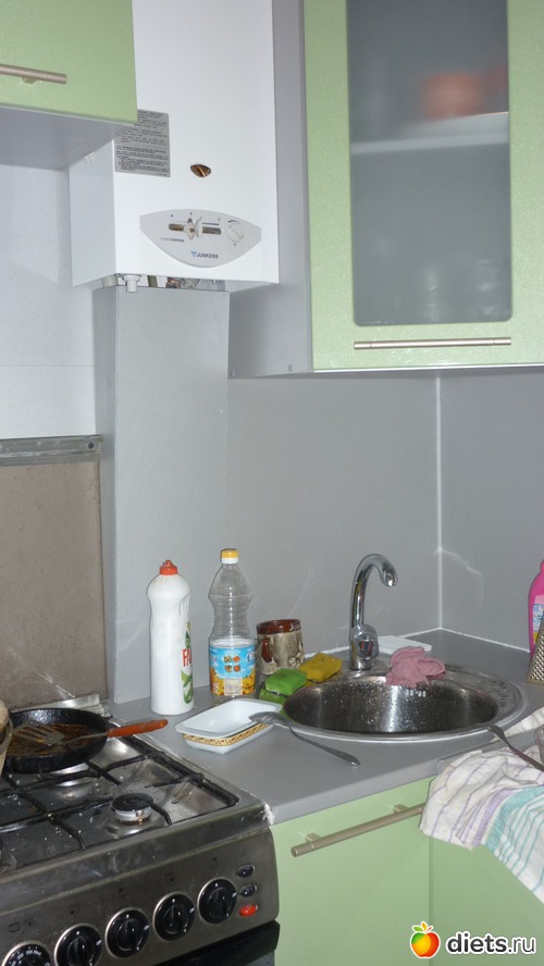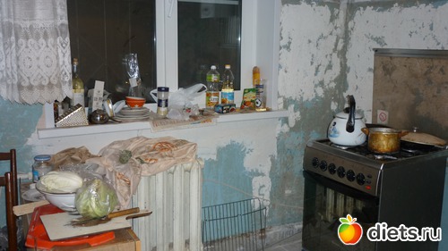 ни слова не сказала о кухне.. кухня у нас маленькая примерно 5 квадратов.. раньше там располагалась газовая плита старый древний холодильник, стол, стиральная машинка служила разделочным столиком и раковина, тоже древняя... белого цвета и крепилась она на деревянных брусках..