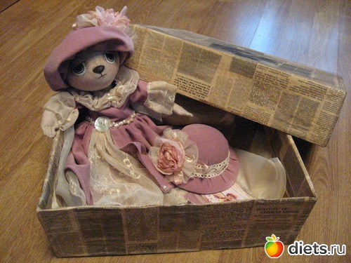Посылка словно по заказу пришла очень быстро, прямо к 8 марта. Ляля приехала ко мне в красивой как-будто старинной коробке. После того, как я ее открыла, сразу поняла, что одно дело - видеть игрушку на фотографии, но совершенно другое дело - держать ее в руках!!! Я была очень-очень и очень рада!