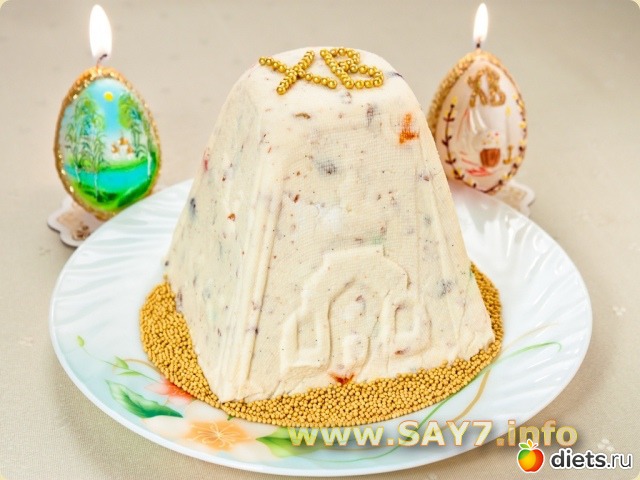 Из указанного количества ингредиентов получаются 2 пасхи, высотой 10 см, диаметром 12 см.