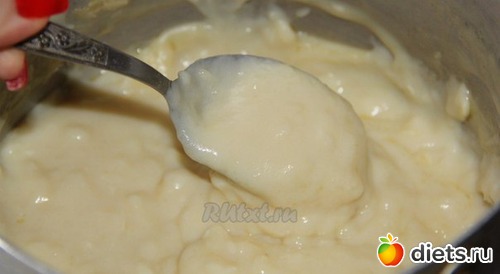 Смешиваем все компоненты, кроме масла, и ставим на огонь до загустения, при этом интенсивно помешивая.