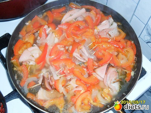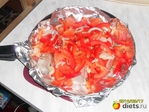 и ставим тушиться на огонь.. фольгу я конечно же убрала, закрываем все крышкой, тушим до готовности