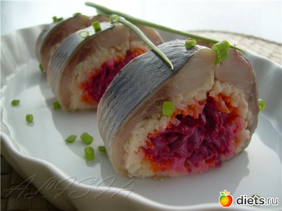 Селедочные рулеты в шубе