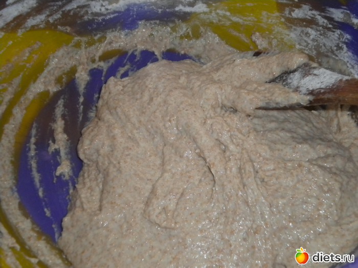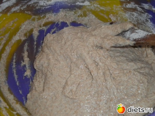 и около 1,5 стакана муки (я брала муку грубого помола).