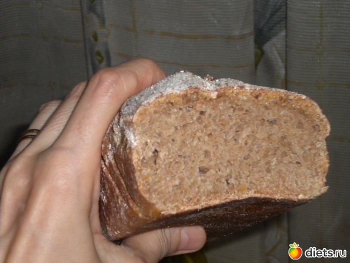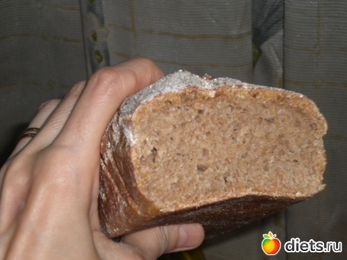 Вот что получилось в результате-корочка тонкая, мякиш влажный, крупнопористой структуры, упругий