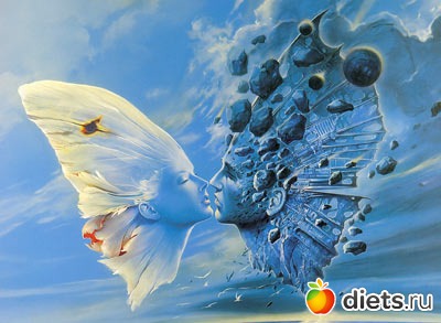 Оказалось, что двум цивилизациям есть чем поделиться друг с другом. Часть мужчин осталось на Венере, а часть женщин полетела на Марс. Мужчины вырыли на Венере свои пещеры и стали жить там, а когда кому-то из них становилось плохо, он уединялся в своей пещере. Это показалось женщинам очень странным, но они понимали, что мужчины прилетели с другой планеты, а на каждой планете свои обычаи и законы, которые надо принимать и уважать. Мужчинам тоже были непонятны многие поступки женщин, а их поведение казалось странным, неправильным и нелогичным. Но мужчины знали, что у жителей разных планет свои законы и если ты не можешь их понять, то надо их просто принимать. Руководствуясь этим знанием, они жили мирно и счастливо.