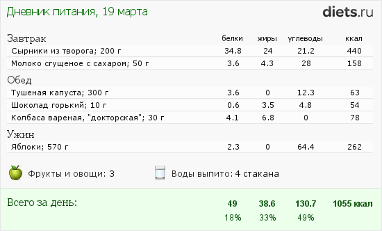 остальное углеводы (их должно быть не менее 40 % от всего рациона, лучше 50-60%