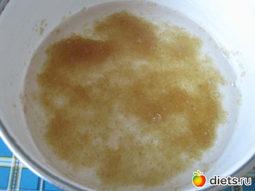 Желатин нагреваем, размешиваем, но не доводим до кипения.