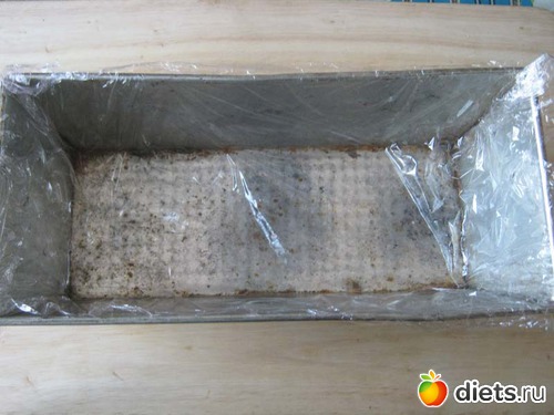 Приготавливаем удобную форму, покрываем её пищевой плёнкой.