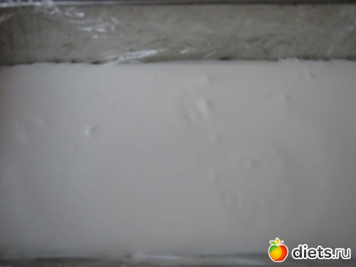 Заливаем творожно-желейную смесь в форму, оставив около 100 мл.