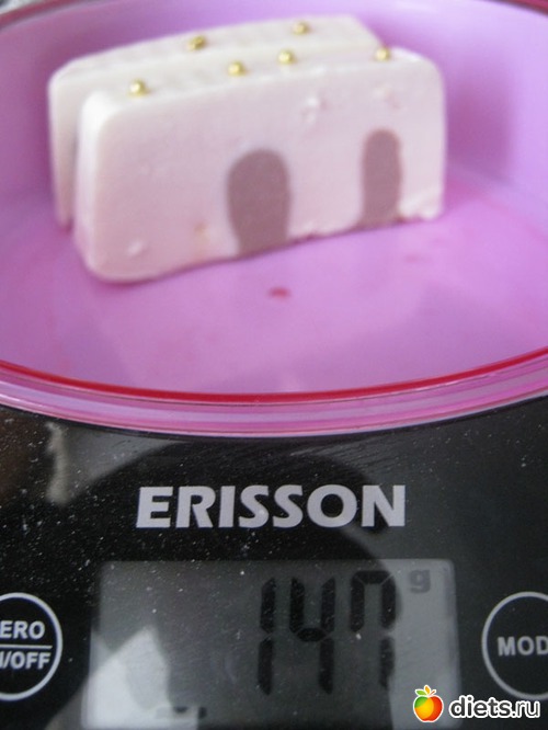 Масса готового десерта около 1 кг, этого будет достаточно накормить 6 человек. Порция около 150 гр, калорийность соответственно 180 ккал.