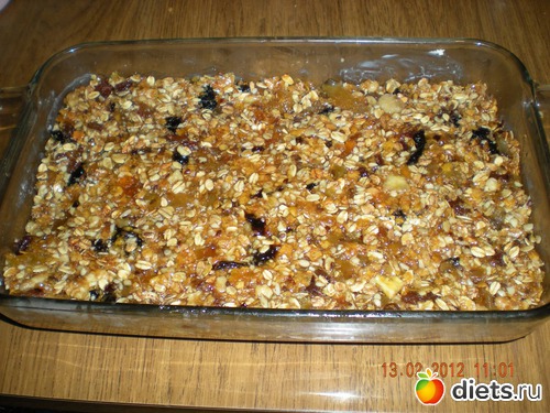 !!! Если ваши мюсли без фруктовых добавок, то отмерьте 1 стакан измельченных сухофруктов. Если у вас мюсли с кусочками фруктов (как у меня), то отмерьте пол стакана сухофруктов.