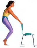 - Держась за спинку стула, ноги поставить на ширину плеч, присесть и подняться на носки.