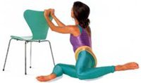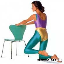 - Сесть на пол держась за спинку стула, правую ногу согнутую в колене переместить в перед, а левую назад. Потом поменять ноги местами.