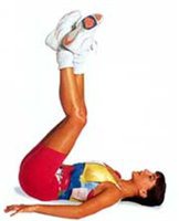 - лечь на спину, ноги поднять вверх, скрестить и приподнять таз.