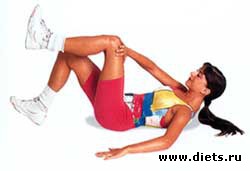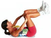 - лечь на спину, ноги согнуть в коленях, пяткой правой ноги коснуться колена левой, левую руку положить на колено правой ноги, приподнять голову и плечи. Повторить упражнения поменяв ноги и руки местами.