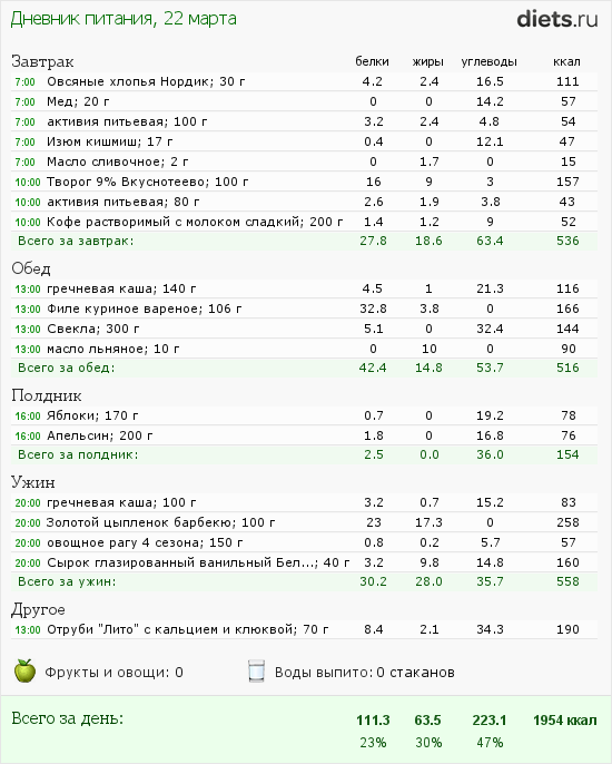 Все было хорошо в течении дня, а вот вечером я поела лишнего и перебрала и белков и жиров и калорий