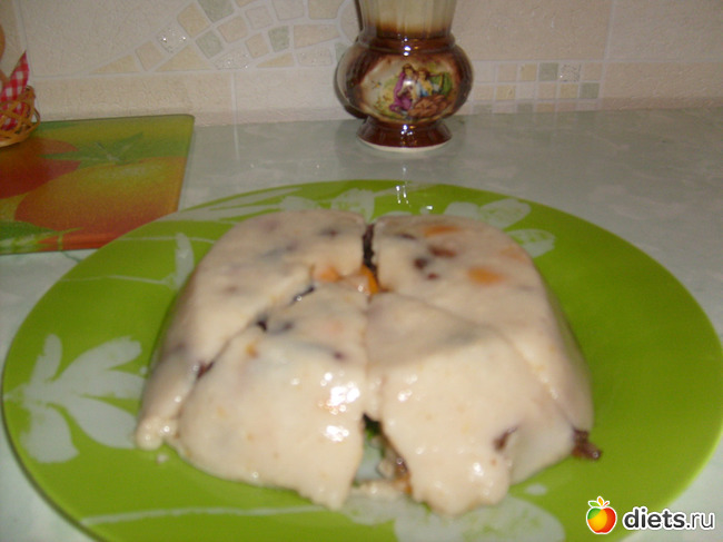 Потом достаем, опускаем форму на несколько секунд в горячую воду и переворачиваем кисель на тарелку.