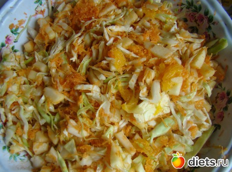 Нарезать капусту тоненькой соломкой. Апельсин очистить от шкурки, разделить на дольки... Читать полностью