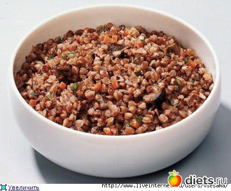 Размолоть на кофемолке гречневую крупу (2 части, например, 2 столовые ложки) и добавить 1 часть размолотого льняного семени. Размешать в чашке, залить кипятком (густоту выбираете сами). Накрыть толстым полотенцем. Дать постоять 10-15 минут. Полученную кашу приправить обжаренным репчатым луком или льняным маслом.