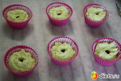 Затем творог разложить в формочки для маффинов по неполной 1 ст. ложке в каждую формочку.