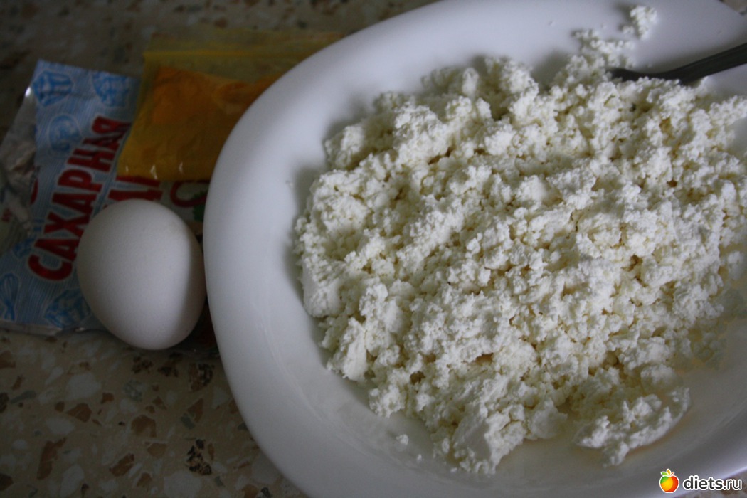 И плюс мука пшеничная. Если у вас творог суховат, то мука не понадобится!!!