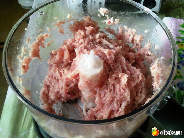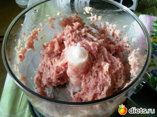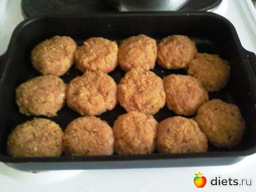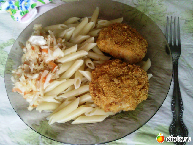 Такие котлетки прекрасно подходят нам, худеющим. Ведь в 100г (а это 2 штуки) содержится всего 180 ккал; Б-16,7; Ж-7,3; У-9,8.
