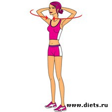 Положите руки на затылок и тяните локти друг к другу. Повторите 10 раз. Потом тяните локти назад.